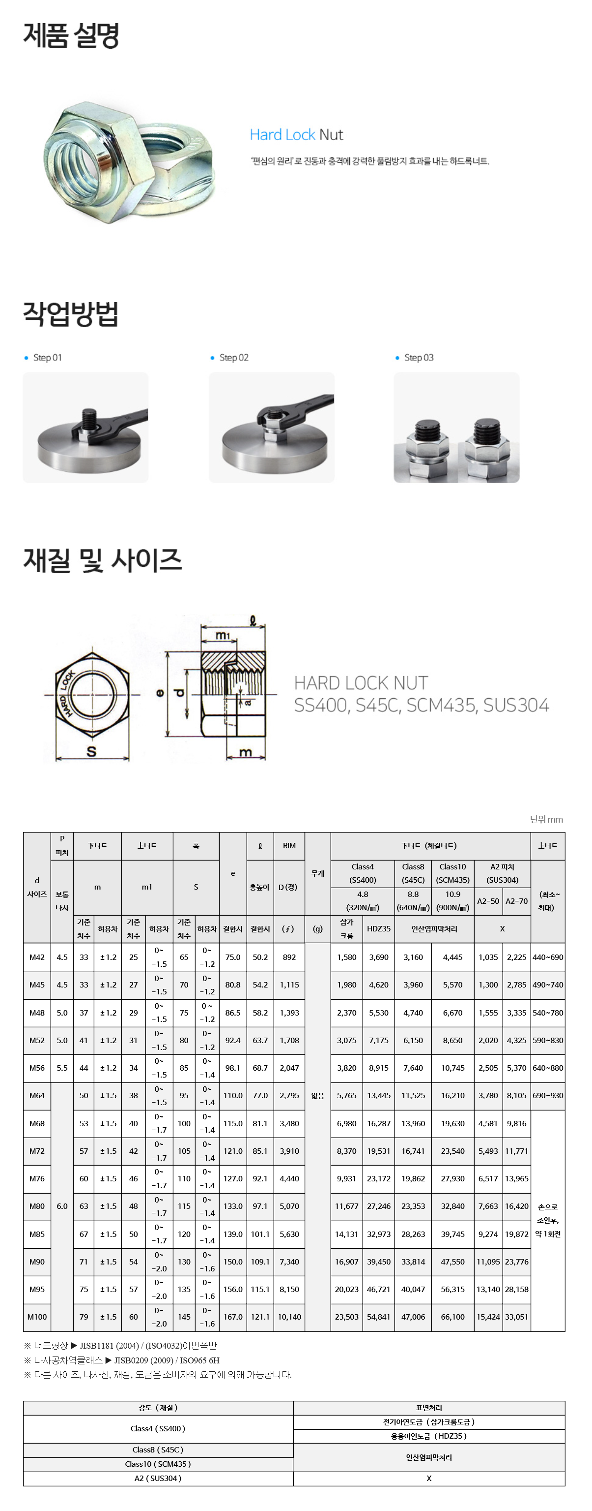 바로 구매하기 사이즈 옵션 선택 M42 M45 M48 M52 M56 M64 강도(재질) 옵션 선택 Class4(SS400) Class8(S45C) A2(SUS304) 표면처리 옵션 선택 전기아연도금(삼가크롬도금) 인산염피막처리 없음(SUS) 총 상품 금액 0 원 장바구니 담기 바로 구매하기